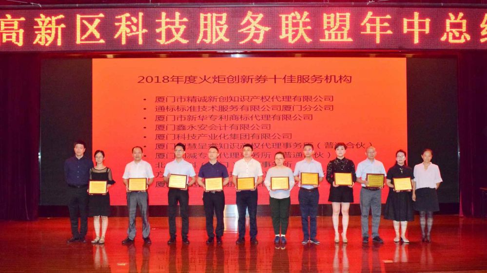8月1日,火炬高新區(qū)科技服務聯(lián)盟舉行“2019年火炬高新區(qū)科技服務聯(lián)盟半年總結大會”。來自火炬管委會領導、科技聯(lián)盟發(fā)起單位代表、火炬創(chuàng)新券服務機構代表、園區(qū)企業(yè)代表100余人參會。會上,廈門IC平臺所依托的廈門科技產(chǎn)業(yè)化集團有限公司被授予“2018年度火炬創(chuàng)新券十佳服務機構”。
