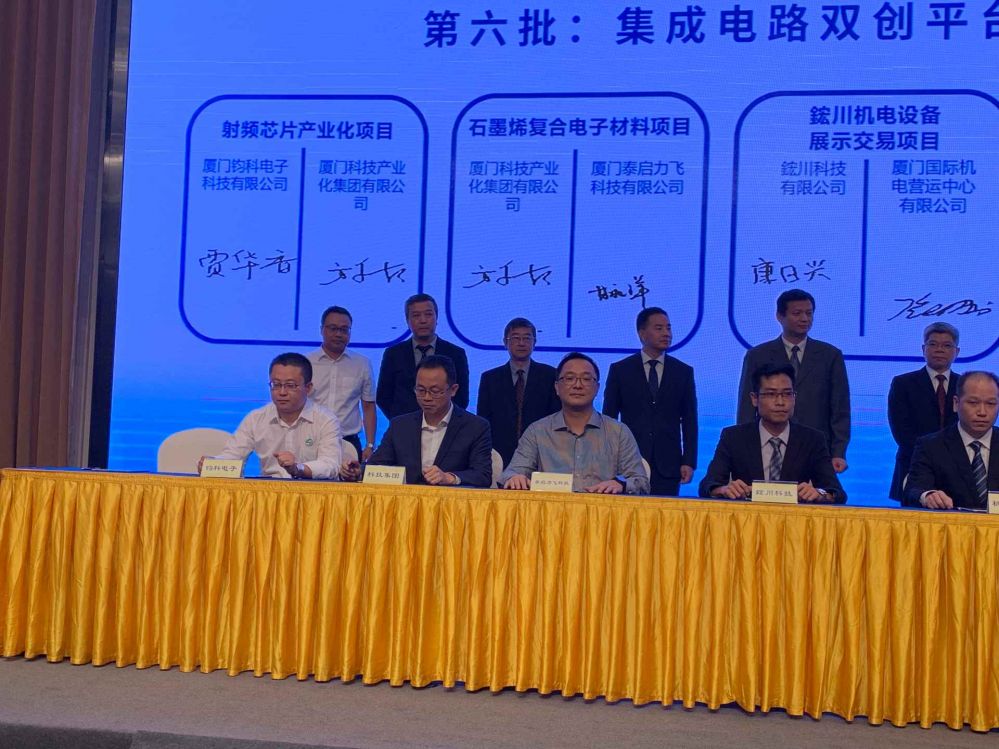 9月9日,由廈門市人民政府主辦,中國(福建)自貿(mào)試驗(yàn)區(qū)廈門片區(qū)管委會、廈門市科技局、廈門市商務(wù)局承辦,廈門市臺港澳辦、廈門市集成電路行業(yè)協(xié)會、廈門自貿(mào)區(qū)等單位協(xié)辦的2019廈門自貿(mào)片區(qū)發(fā)展機(jī)遇說明會成功舉行。會上,科技集團(tuán)與廈門鈞科電子科技有限公司、廈門泰啟力飛科技有限公司簽署了入駐集成電路萬翔基地合作框架協(xié)議??萍技瘓F(tuán)謝勇堅(jiān)董事長作為簽約見證人出席,集團(tuán)常務(wù)副總方永松、鈞科電子賈華香總經(jīng)理助理、泰啟力飛甘秋洋董事長作為簽約代表出席簽約活動。
