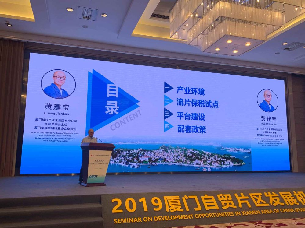 在廈門自貿(mào)片區(qū)推介環(huán)節(jié),科技集團(tuán)IC服務(wù)平臺主任黃建寶做了題為“自貿(mào)創(chuàng)‘芯’——集成電路雙創(chuàng)平臺”精彩的主題演講,從產(chǎn)業(yè)環(huán)境、流片保稅試點(diǎn)、平臺建設(shè)、配套政策等四個方面進(jìn)行推介。會后,澳大利亞籍客商專程與黃建寶主任交流了業(yè)務(wù)合作事宜,探討在半導(dǎo)體產(chǎn)業(yè)鏈開展有效合作。