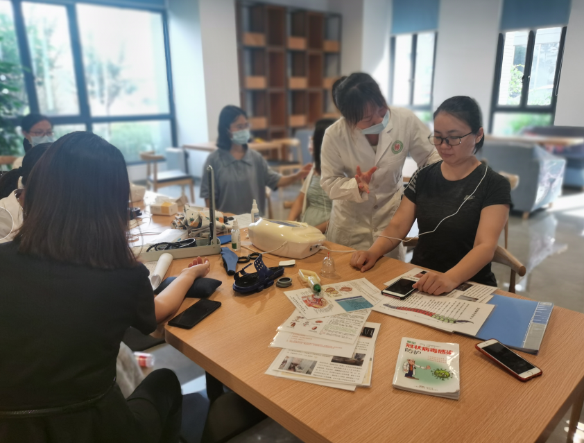 義診過程中,醫(yī)護(hù)人員主要以測量血壓、把脈、健康咨詢、食療保健及針灸理療為主。并提出科學(xué)飲食建議,提醒園區(qū)企業(yè)職工要改變不良生活方式,多參加鍛煉,發(fā)現(xiàn)頭暈、頭痛等問題要及早到醫(yī)院進(jìn)行檢查治療,對于不同的病癥如何合理安全的用藥。并利用所學(xué)知識向園區(qū)職工普及中醫(yī)藥和職業(yè)病預(yù)防知識,通過傳統(tǒng)中醫(yī)技術(shù)服務(wù)來提高廣大職工對中醫(yī)知識的認(rèn)識和職業(yè)病預(yù)防能力。