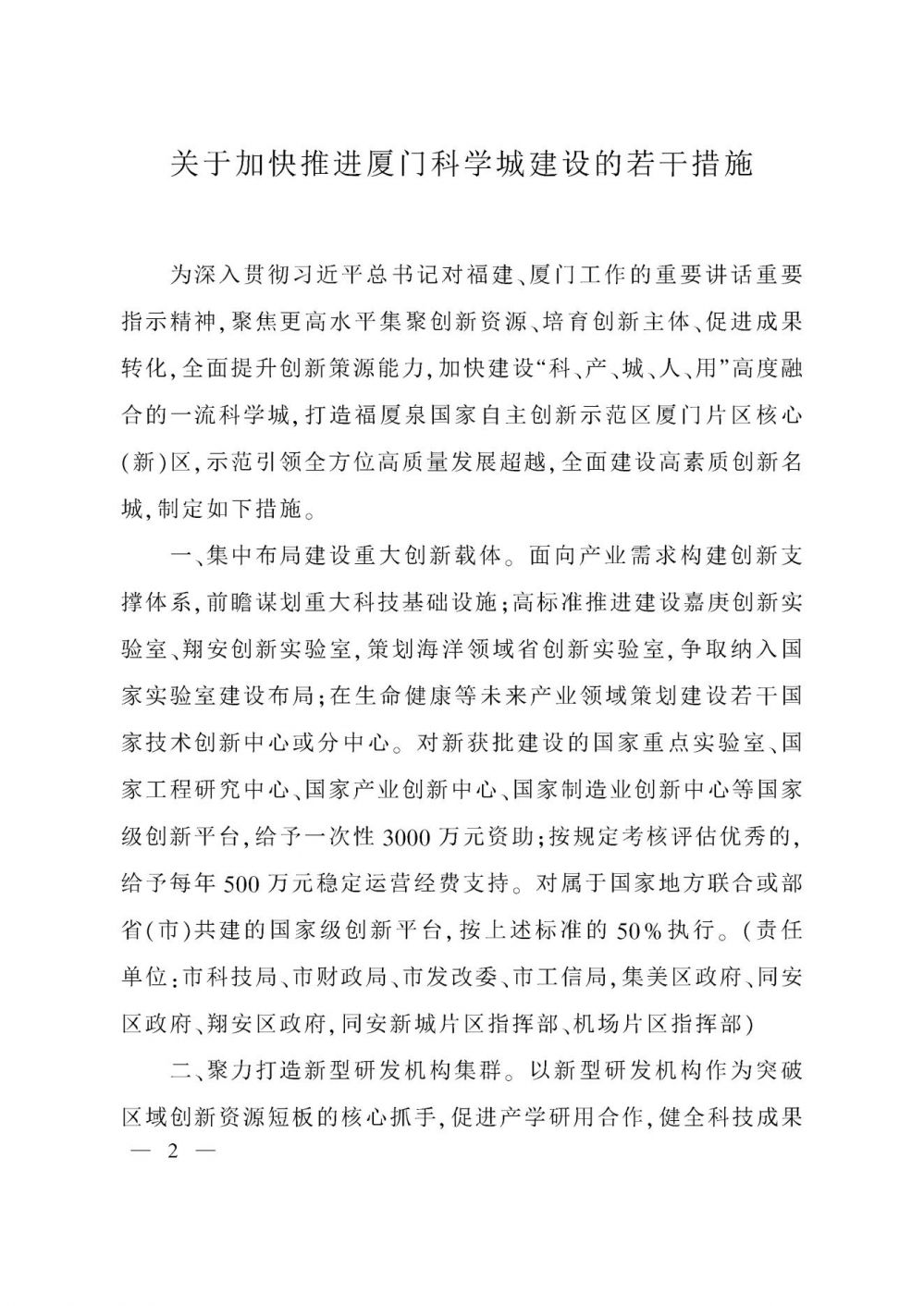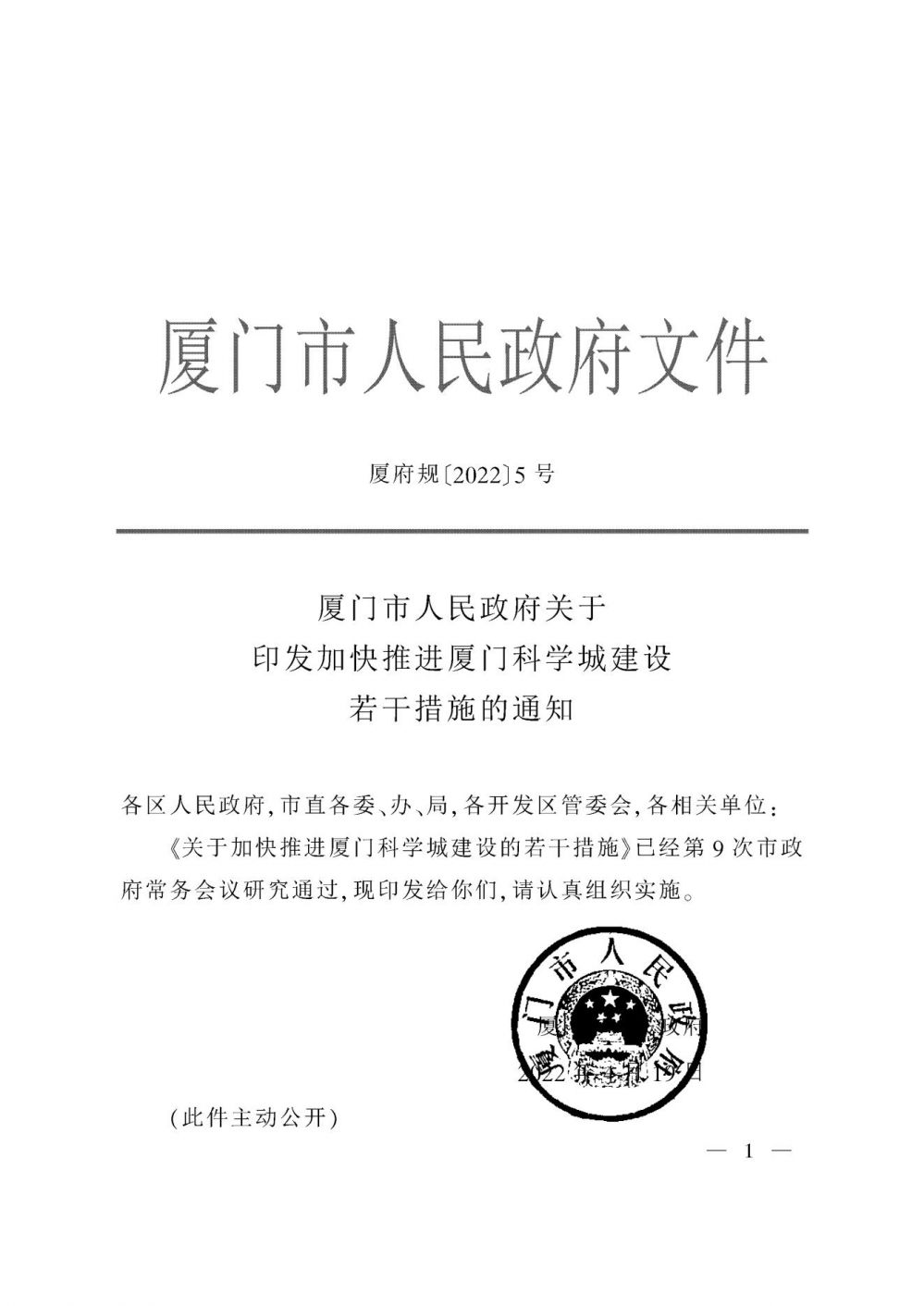 轉(zhuǎn)發(fā)《關(guān)于加快推進(jìn)廈門科學(xué)城建設(shè)的若干措施》 欄目:科技政策 來源:廈門科技產(chǎn)業(yè)化集團(tuán) 時間:2022-04-28 熱度:810