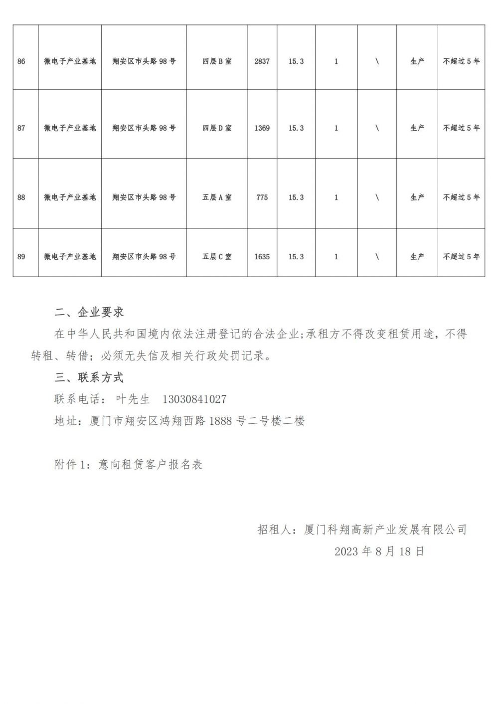 廈門科翔高新產(chǎn)業(yè)發(fā)展有限公司房產(chǎn)招租公告