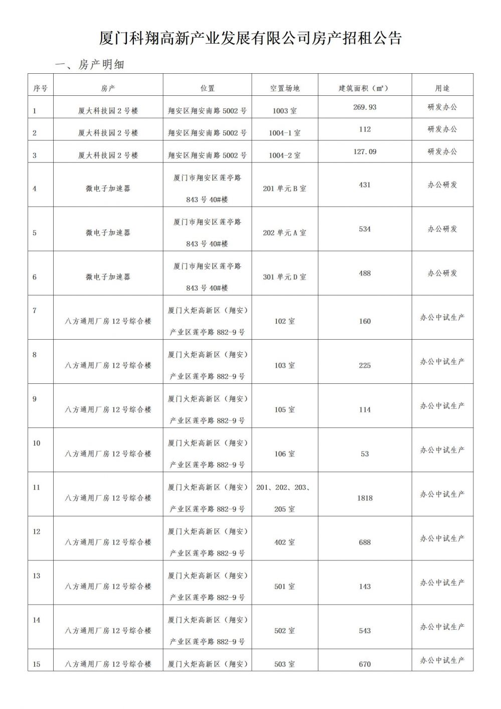 廈門科翔高新產(chǎn)業(yè)發(fā)展有限公司房產(chǎn)招租公告 欄目:通知公告 來源:廈門科技產(chǎn)業(yè)化集團(tuán) 時(shí)間:2024-01-16 熱度:183